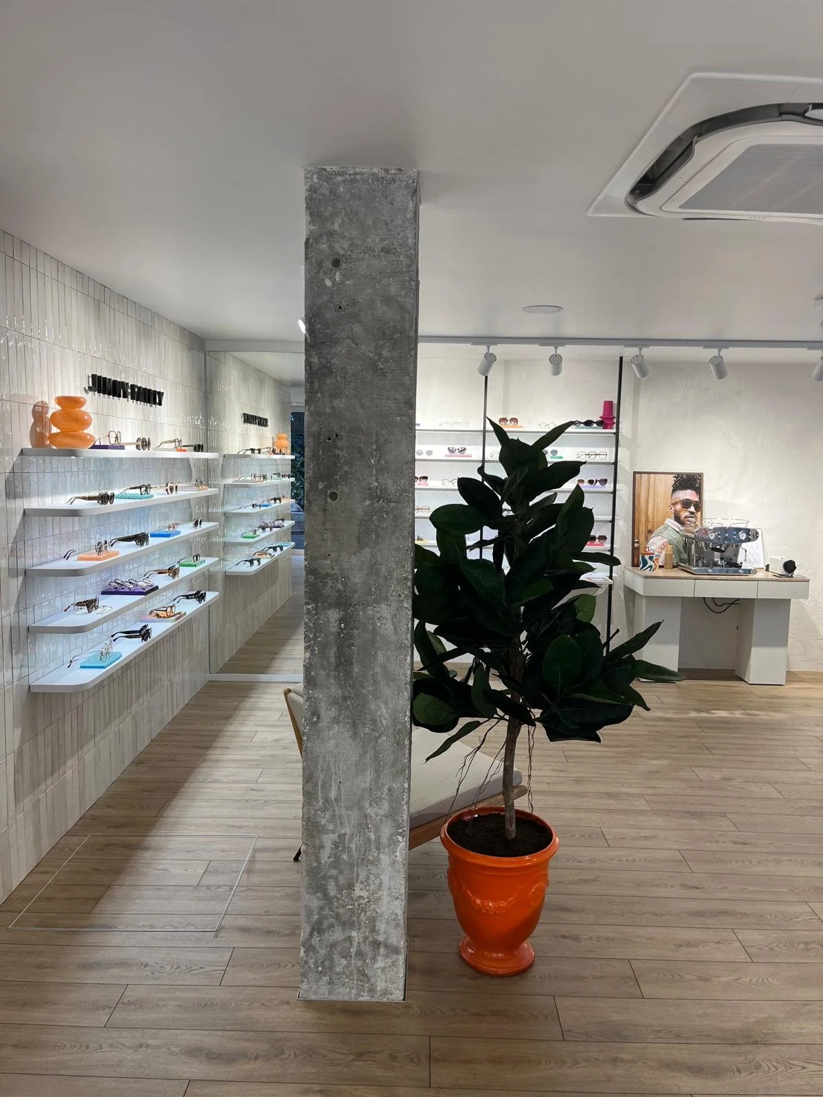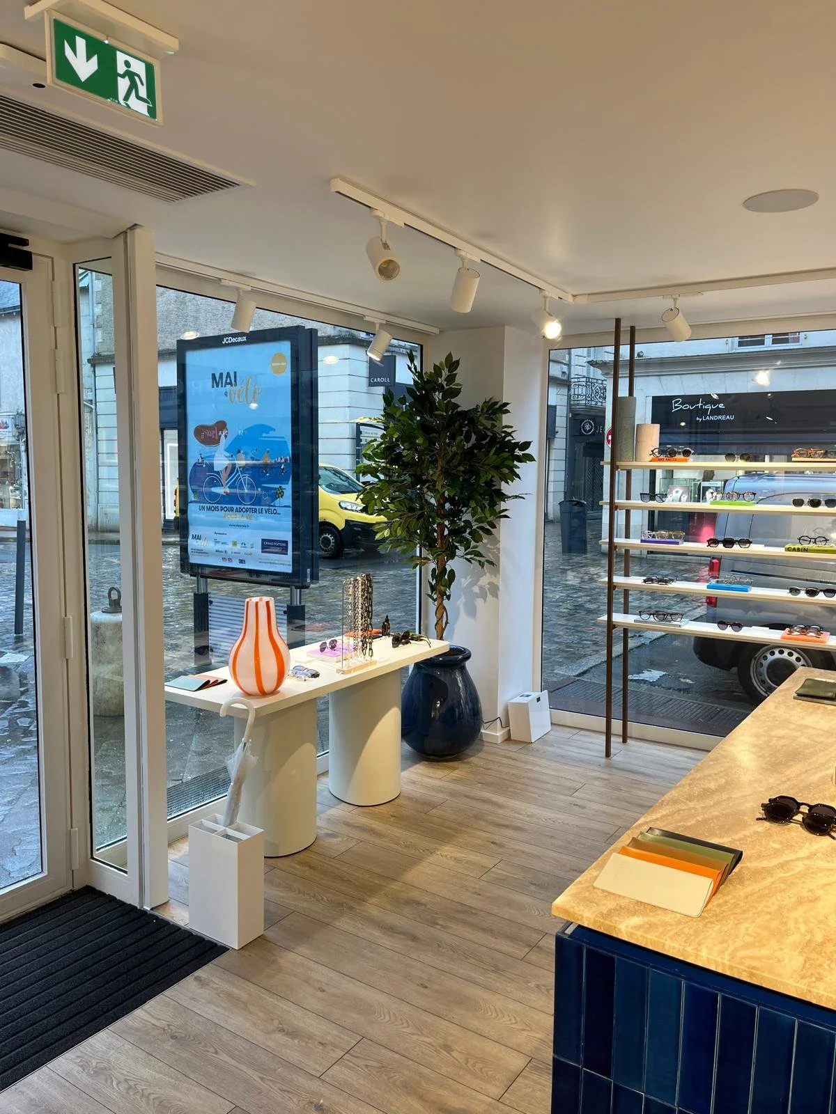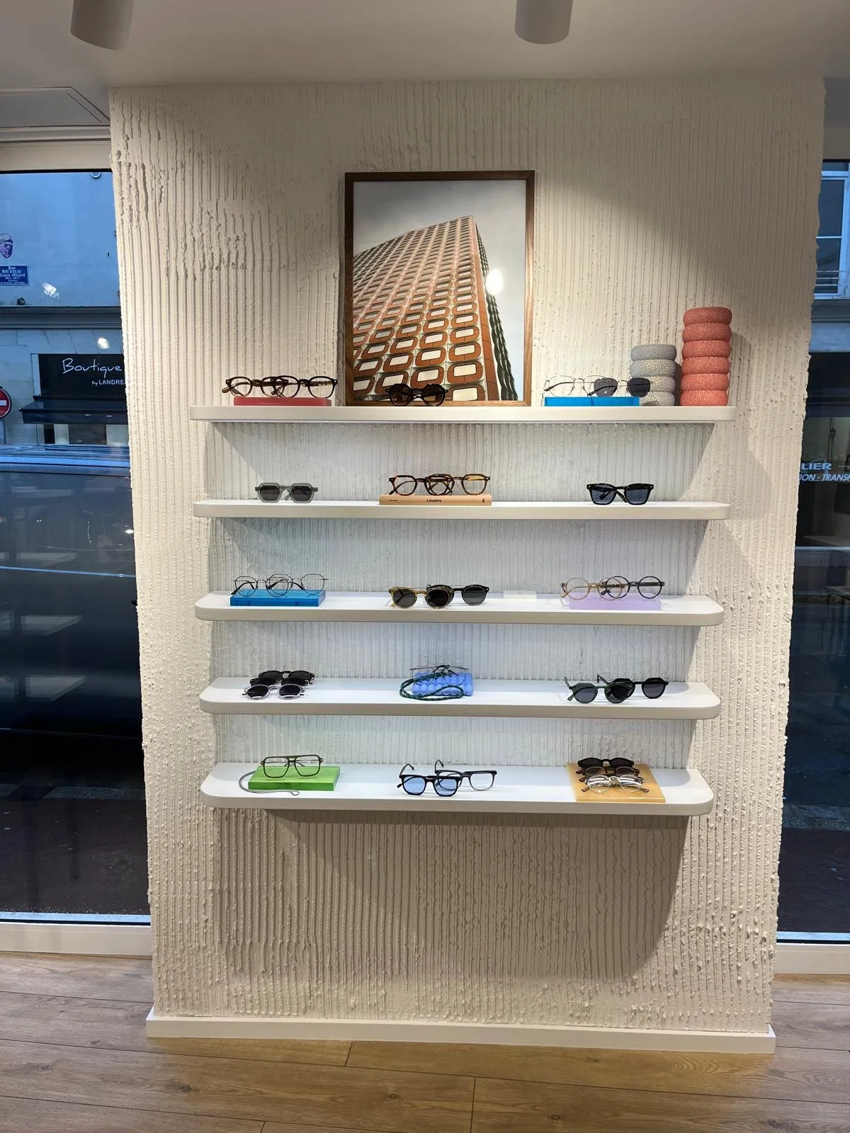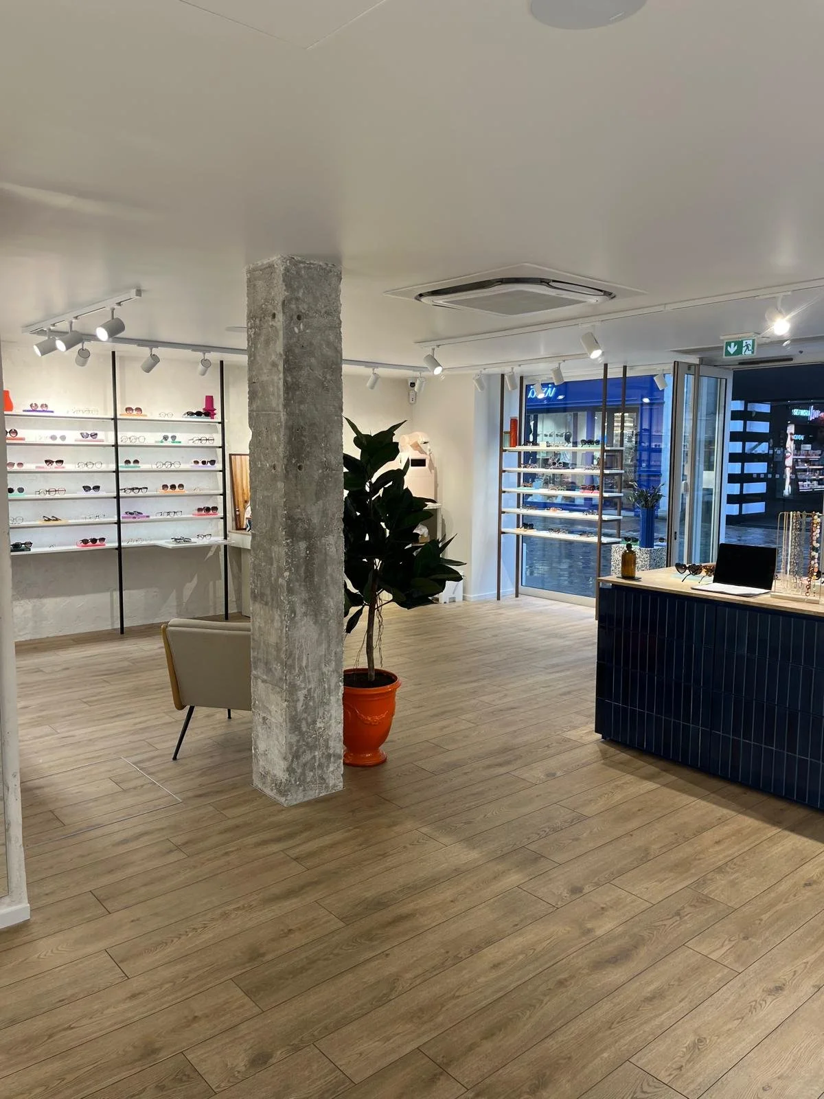 Cet opticien passionné, amoureux des couleurs vives et du bleu nuit, a émis le souhait de réaliser un design “osé et rafraîchissant”. Après une visite sur les lieux et quelques sessions de brainstorming, nous avons pu élaborer ensemble une solution. Voici le résultat.
